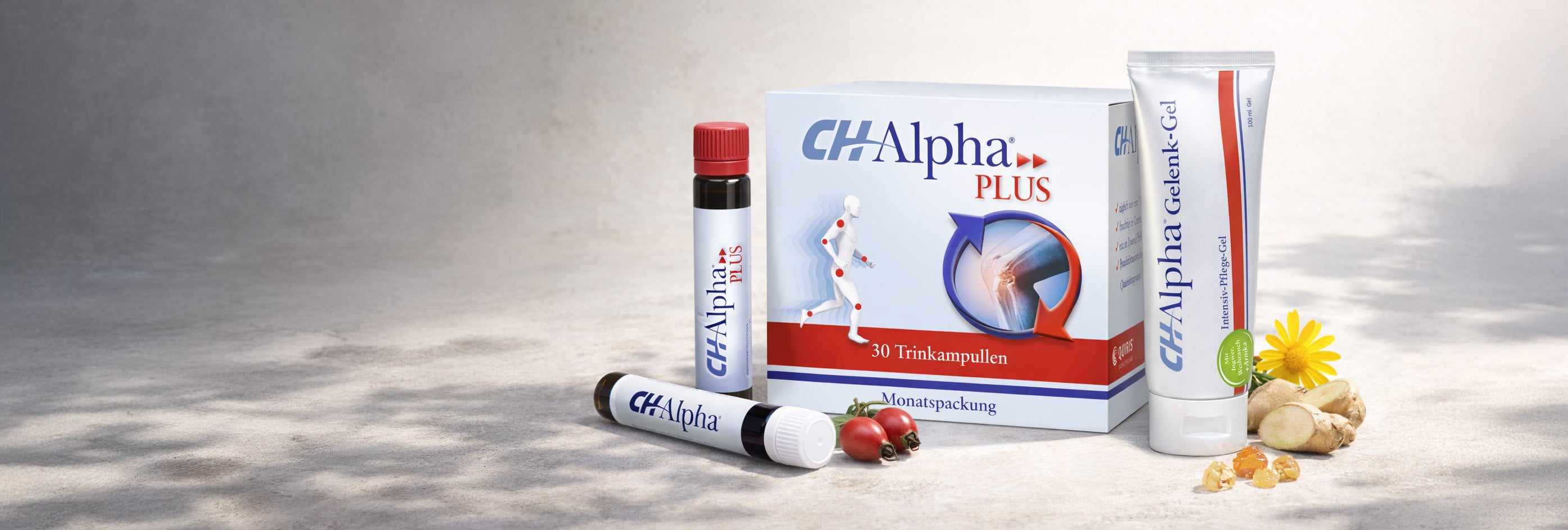 CH-Alpha® PLUS und CH-Alpha® Classic sind hochwertige Trink-Kollagen-Präparate ergänzt um CH-Alpha® Gelenk-Gel zur äußeren Anwendung – abgestimmt auf Alltag, Alter oder sportliche Belastung.